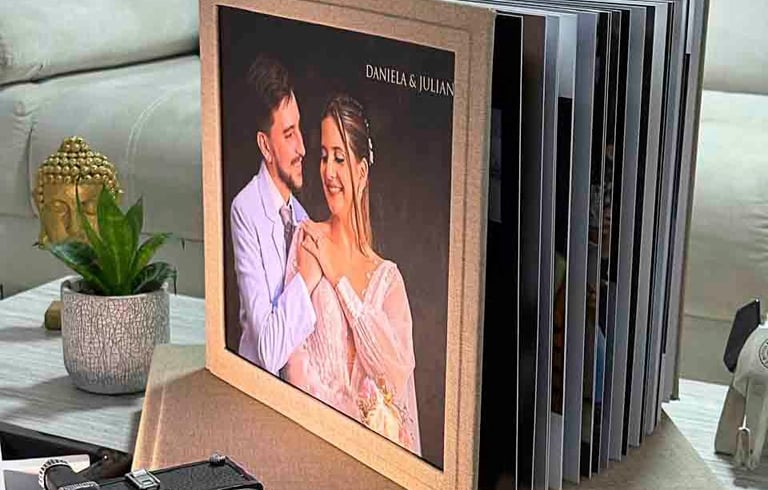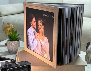 El viaje no termina con el último baile. Ponemos a tu disposición una galería digital exclusiva de alta velocidad, diseñada para que puedas revivir, seleccionar y descargar tu historia con un solo clic. Para quienes creen en el valor táctil del recuerdo, materializamos tu día en Photobooks de autor. Piezas de arte con apertura de 180 grados (hoja plana) que permiten apreciar cada imagen en su máximo esplendor, disponibles en diversos formatos y acabados de lujo para adaptarse a tu biblioteca familiar.